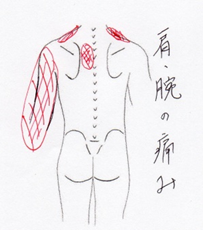 先日、娘さんと出かけてから肩甲骨間の痛みと、腕の重たさを感じているとのこと。
